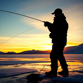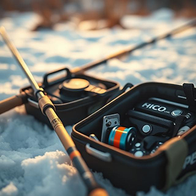 Activar mis 600 FSImágenes ilustrativas de pesca invernal, equipo y paisajes del sur.